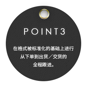提供与客户的产品企划、副资材设计体制以及物流相对应的订单管理系统的设计和运用。 此外,通过灵活应用IT网络的订单系统体制将低成本高速度的共给变成了可能。